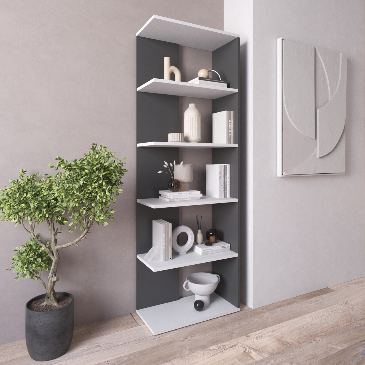 Полиця для книг та декору, стелаж на 5 полиць D-6